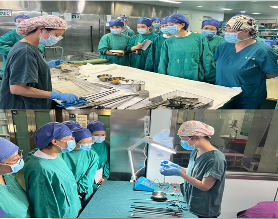 活动由消毒供应中心骨干李子峰、孙倩带领大家对器械的处理进行近距离观摩,从器械的回收分类,清洗消毒、检查组配、包装灭菌等环节进行详细讲解与展示。通过现场观摩、操作展示、相互交流等方式让参会人员更加深刻地了解消毒供应中心的工作内容,同时对复用医疗器械消毒灭菌十大流程的处理过程有了更直观的认识。最后许丽荣主任总结,要求增强主动服务意识,及时了解临床科室的需求,更好地为临床科室和患者服务。