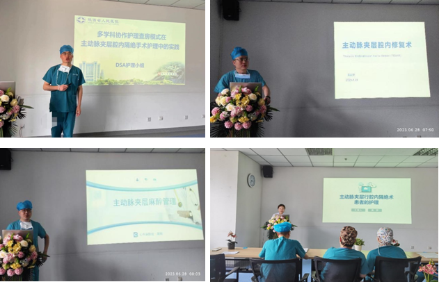 本次护理查房以交流DSA专科手术配合经验、讨论疑难护理问题为目的,采取线下PPT授课形式,在手术室崔雅清护士长精心组织下,由心血管外科张国安医生、周刚麻醉医生、心血管外科监护室满莎护士及DSA手术护理小组朱坤、张宗直两位护士共同联合开展。全体手术室护士参与查房,进一步完善了心脏外科手术标准化配合流程,对主动脉夹层患者实施DSA手术达到同质、专业、精准、高效的护理配合奠定了坚实基础。