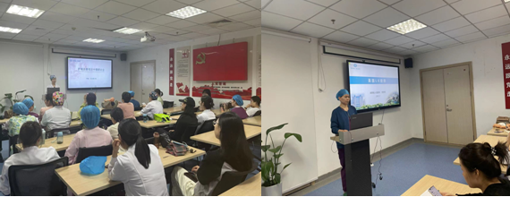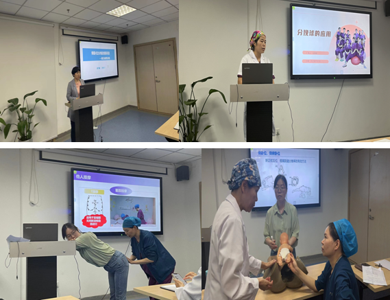 会上,田飞娟组长进行《侧卧位分娩》规范培训,从侧卧位分娩的意义、技术要点、注意事项及风险点管控等方面进行讲解,通过案例分享、实操视频播放等形式,规范助产士的专科操作。随后,刘茹老师讲述了侧卧位接生的原则、适应证及具体实施方法;李梦娇组长讲解《英国LK按摩》的具体实施方法;马美静老师讲解导乐球的使用规范;田美荣组长讲解《产程中出现枕后位、枕横位的产妇如何进行有效的体位干预》。整个培训过程彰显助产护理的专业性、规范性,尤其是实操演练部分,大家积极参与、热情高涨,相互指导,有效矫正。