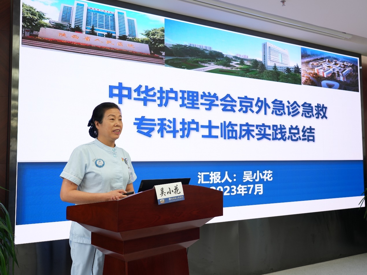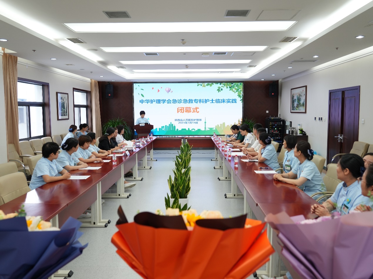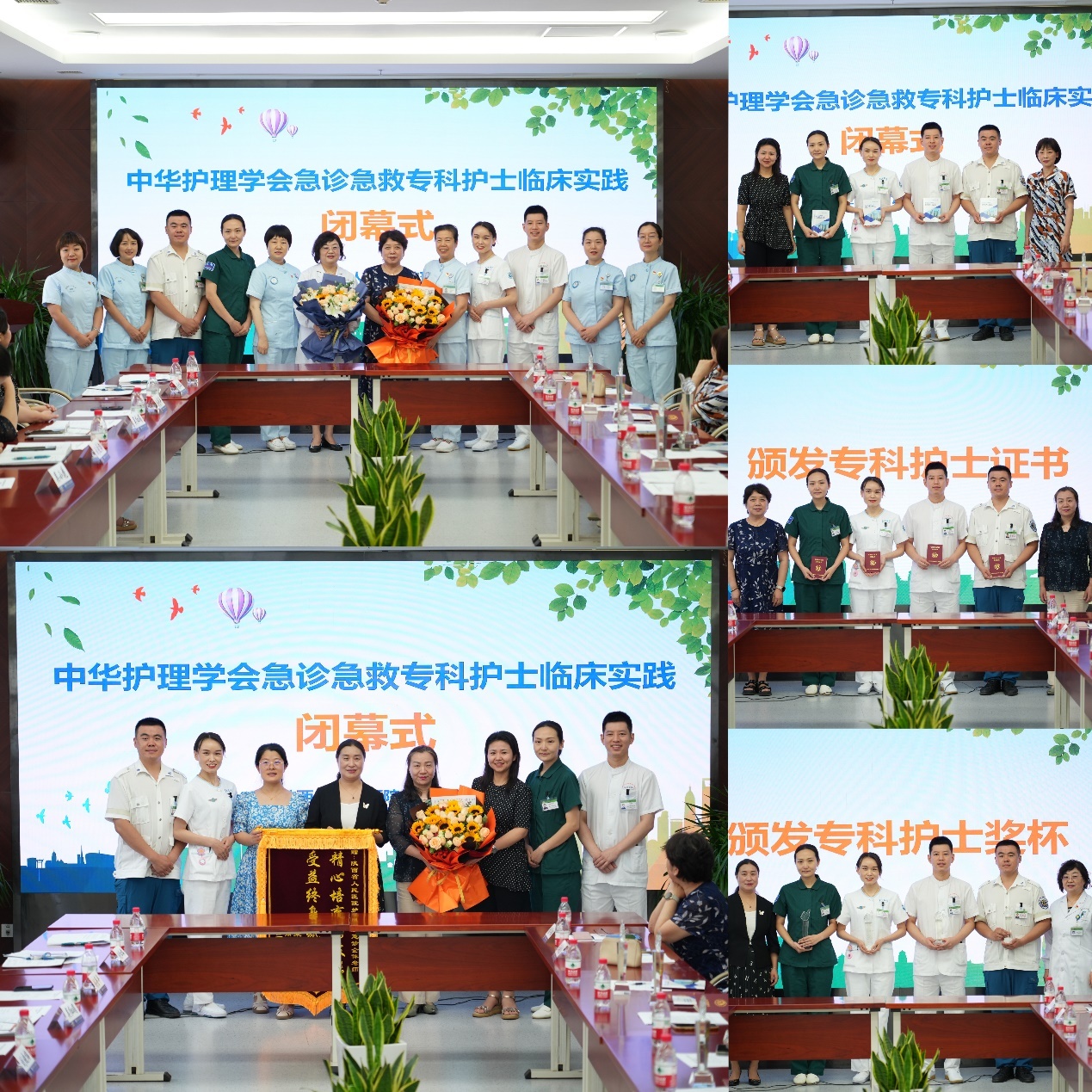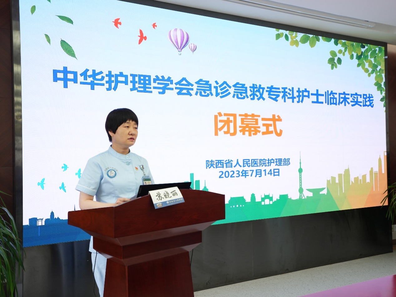 举行,陕西省护理学会张华丽秘书长、护理部吴红娟主任、急诊内科刘丹平主任、护理部刘晓梅副主任、刘红梅主任助理、王晓庆总护士长、急救中心护士长、基地师资团队及4位学员参加闭幕式。会议由急诊外科苏晓丽护士长主持。