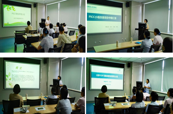 首先,小组副组长焦红侠护士长做本年度小组质量改善项目的中期汇报。随后,小组成员血液内科王娟、肿瘤内科姚娜、肿瘤外科肖冰、妇科寻倩、普外一科成娟丽分别分享了PICC/PORT在临床应用中遇到的疑难案例。小组成员就上腔静脉综合征患者能否安全置入PICC、置管时机如何把控、PICC相关深静脉血栓、淋巴漏液的判断及处理流程、输液港患者出现囊袋感染、血流感染的判断及处理流程等问题进行了热烈讨论。大家结合最新发布的专家共识及相关文献认真剖析,相互交流,分享经验,达到了共同提高的目的。