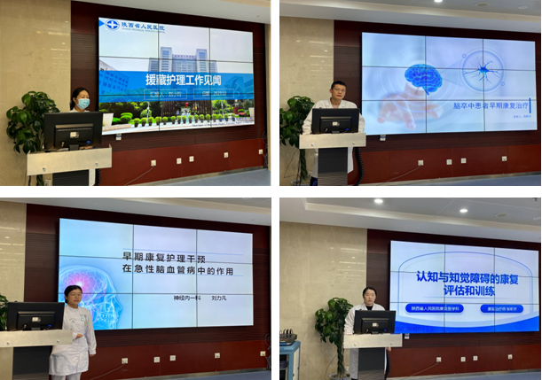 康复医学科吕凯伦主管治疗师讲述了“脑卒中患者的早期康复治疗”,包括早期康复治疗的理念、评估方法和康复治疗措施。神经内一科刘力凡主管护师分享“早期康复护理在急性脑血管病的应用”,康复医学科张昕宇治疗师讲解了“认知知觉障碍的康复评价和训练”,大家进一步了解了早期康复护理的重要性、护理方法及措施,对认知知觉障碍有了新的认识,对康复评价和训练方法有所掌握。曹维娜护士长做了最后总结。