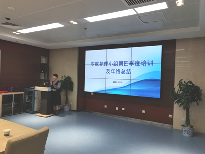 11月29日,皮肤护理专科小组举办第四季度培训会,全院皮肤护理专科小组成员参加,皮肤护理专科小组组长、国际伤口治疗师王倩护士长主持。
