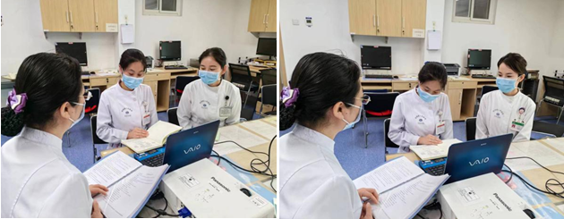 此次演练由科室应急小组组长刘媛主持。演练现场模拟一位老年糖尿病住院患者等待换药时突发跌倒的应急处置。住院患者等待换药时突然跌倒在床边,听到其他患者的呼救,正在协助患者服药的护士立即赶到患者身边,安慰患者,监测生命体征,协助医生迅速查看伤情,在确认患者无明显损伤、可以挪动的情况下,以正确搬运方法将患者移至病床。另一名护士立即与家属、主管医生沟通,一系列急救工作有条不紊地进行着,包括人员调配、监测生命体征及观察病情变化、现场建立静脉通路、准确给药、医患沟通等流程。经紧急处置,患者意识恢复,生命体征转为平稳,于病房进一步观察治疗。演练结束后,陈颖慧护士长组织大家进行讨论,对演练情况进行分析,提出不足、改进措施并进行总结。
