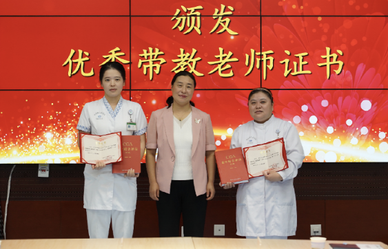 经过严格的考核,评选出王柳怡、武鑫2位学员为本期培训班优秀学员,评选出老年神经科任培、老年消化科王雯为优秀带教老师。刘晓梅副主任、刘凌华总护长为优秀学员和优秀教师颁奖。王柳怡、武鑫作为优秀学员代表,对这段时间的学习和感触发表感言,并代表全体学员向五楼自拍