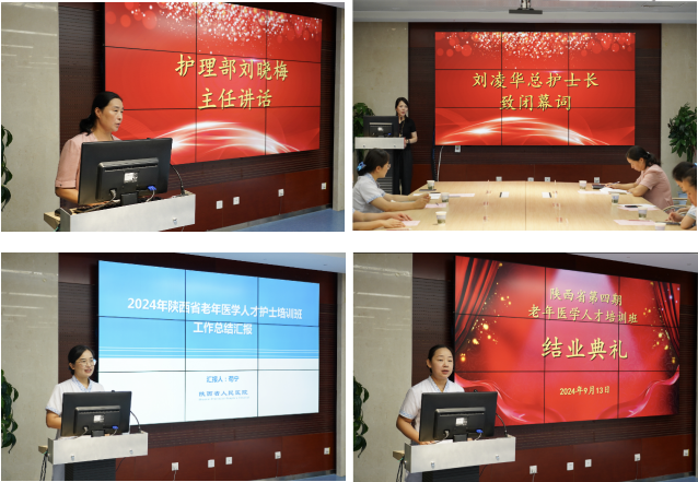“萤孤无远照,蝉断有遗声”,值此夏末初秋之际,为期1个月的“陕西省第四期老年医学人才培训班(护理)”圆满落幕,并于2024年9月13日上午举行结业闭幕式。护理部刘晓梅副主任、老年病院刘凌华总护士长及各科室护士长、培训班学员参加会议,会议由老年神经科副护士长山珊主持。
