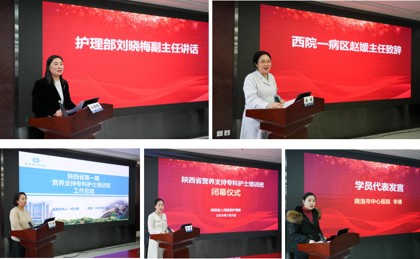 承办的2024年首届陕西省营养支持专科护士培训班圆满落幕。护理部刘晓梅副主任、西院一病区赵媛主任、营养科张英主任、护理部刘红梅主任助理、牛倩总护士长、赵文彩总护士长、何小静护士长、相关实践科室师资及全体学员参加结业典礼。会议由班主任温馨副护士长主持。