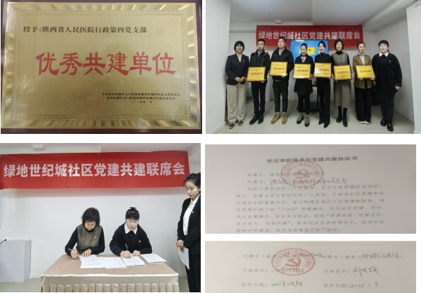 近日,行政第四党支部在与高新区绿地世纪社区党总支携手开展的党建共建活动中表现卓越,被授予“优秀共建单位”荣誉称号。在支部书记刘晓梅安排下,党员牛倩总护士长和宣传委员王晓庆总护士长作为代表前去接受授牌,并与绿地世纪社区签署党建共建协议书。