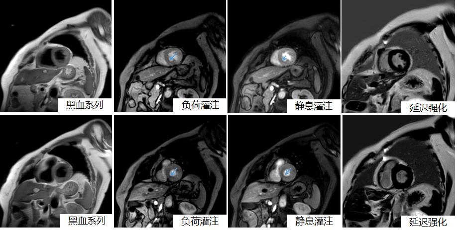 杨艳蓉主治医生经过分析图像,发现患者静息与负荷心肌灌注显示左心室多节段可见心内膜下灌注缺损,延迟强化未见异常(图1),提示患者心肌存在微循环障碍,这也解释了患者心外膜冠状动脉主要分支未见明显狭窄,仍反复出现胸闷、胸痛等症状,患者高血压病史已10年,血压最高170/100mmHg,而导致心肌微循环障碍。