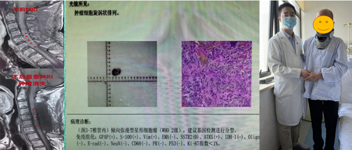 首例黄荧光辅助下高颈段脊髓胶质瘤切除术,目前患者已顺利出院。