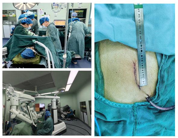 移植泌尿外科(西咸)李智斌主任团队联合泌尿外科孙羿主任团队组织多学科讨论,制定手术方案。在麻醉科、手术室的配合下,由孙羿主任团队完成机器人辅助下的活体供肾切取术,李智斌主任完成微小切口亲属活体肾移植术,微创获取肾脏联合微小切口肾移植,术后切口仅5cm,两台手术总时长5小时左右,目前供受双方均在顺利恢复中。