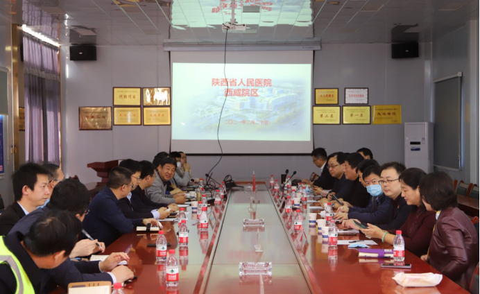 2月20日下午,党委书记高敬龙,党委副书记易智,副院长张玉莲、马富春,纪委书记王利军、副院长米涛及院长助理张恩科、段降龙等班子成员,实地调研医院西咸院区建设情况,并就项目具体问题进行座谈交流。秦汉集团公司党委副书记、副总经理张长生,党委委员、副总经理董延安陪同调研。