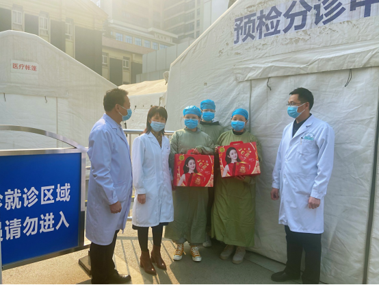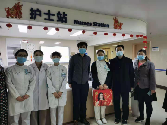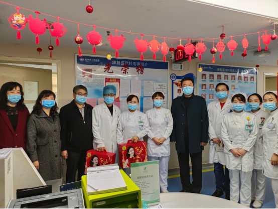 大年初一一大早,五楼自拍 领导班子带领行政职能处室、部门负责人分别到门急诊、住院病区,到总务、保卫、后勤部门各个岗位,尤其是今年加强疫情防控重任下,向节日期间毅然坚守岗位的职工表示慰问,送去医院的关怀和温暖,并致以新春的问候和祝福!