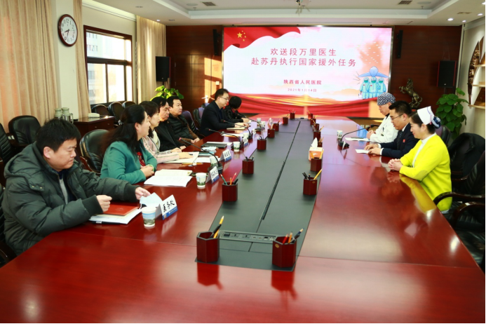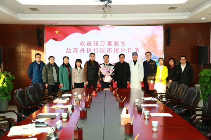 1月14日上午,医院为即将赴苏丹执行国家援外医疗任务的泌尿外科段万里主治医师举行欢送会。高敬龙书记、宋张骏院长、张玉莲副院长、党办、院办、医务处、人事处和泌尿外科等处室、科室负责人参加,院办张真妮主任主持。