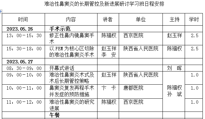 耳鼻咽喉头颈外科主办的省级继续教育项目“难治性鼻窦炎的长期管控及新进展研讨学习班 项目编号:2023-07-01-011(陕)”定于2023年5月26-27日在陕西渭南举行,欢迎广大鼻科医师及护理人员参加!