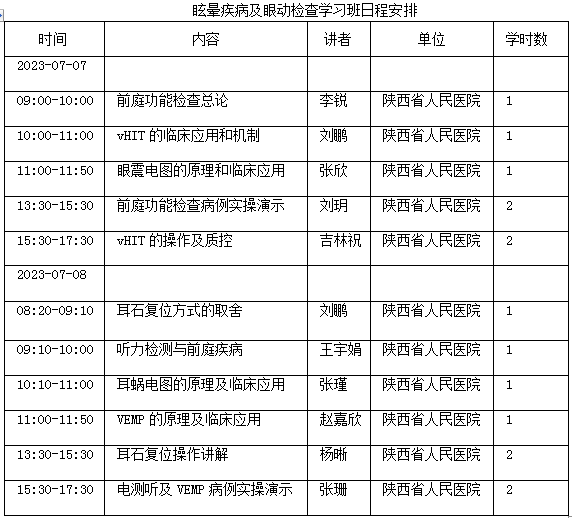 1.“眩晕疾病及眼动检查学习班”在7月7日—8日,本次学习班不收取任何费用,报名请拨打电话15902988359(赵老师)。