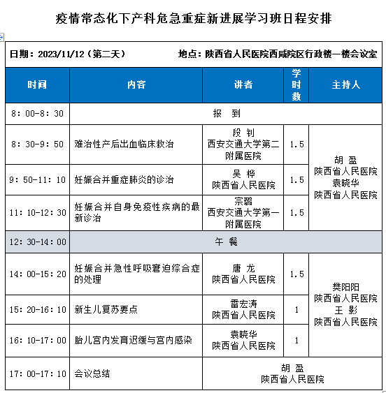 将于2023年11月11日至12日,举办“疫情常态化下产科危急重症新进展学习班”,届时将邀请省内外业界知名专家现场授课。学习结束后,考勤及考试合格者将授予省级继续医学教育学分6分。现将具体事宜通知如下:
