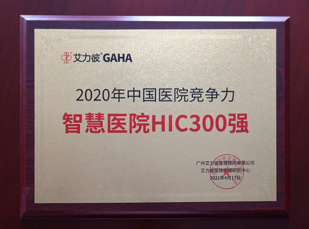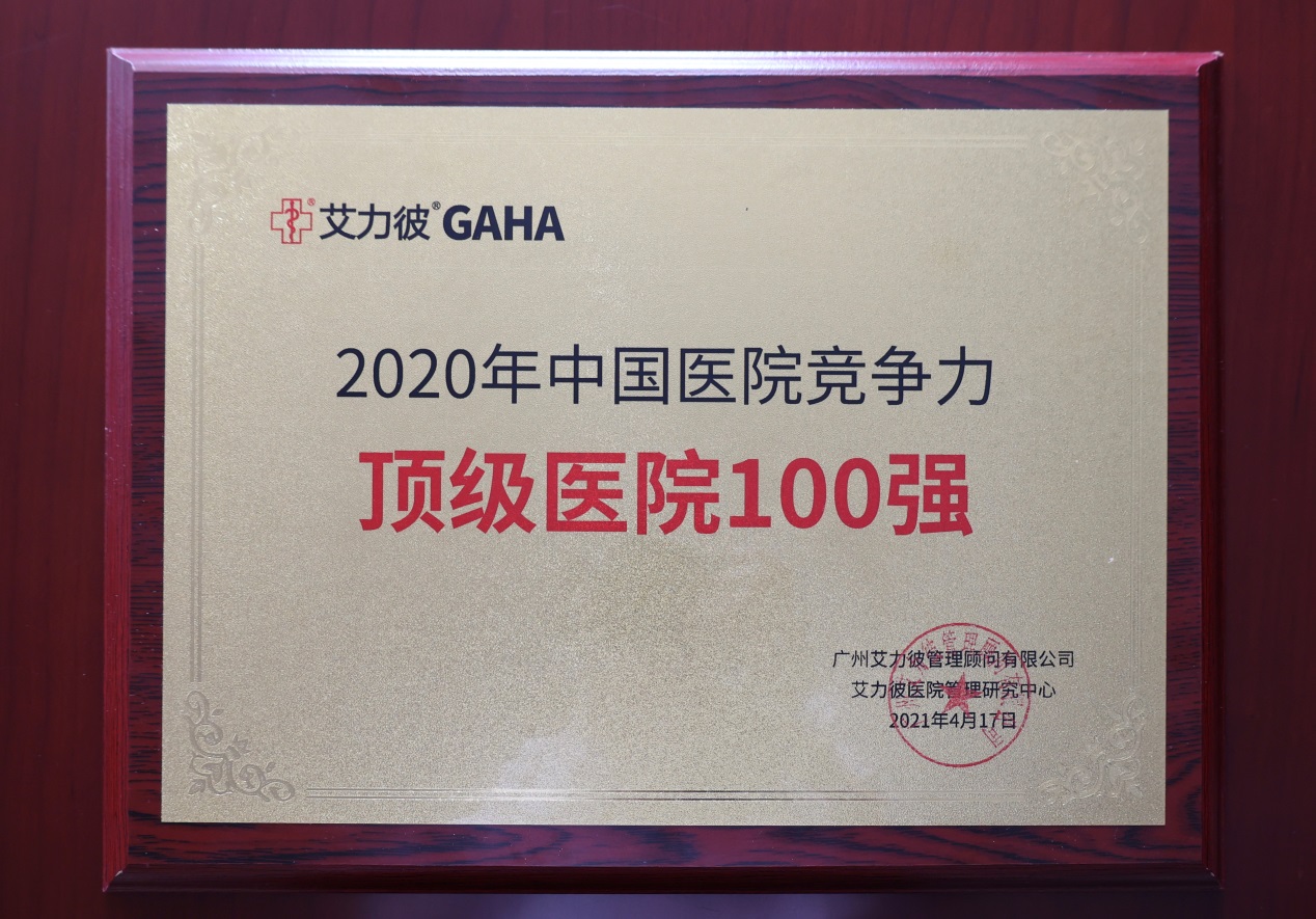 五楼自拍 入围2020年中国医院竞争力顶级医院百强榜