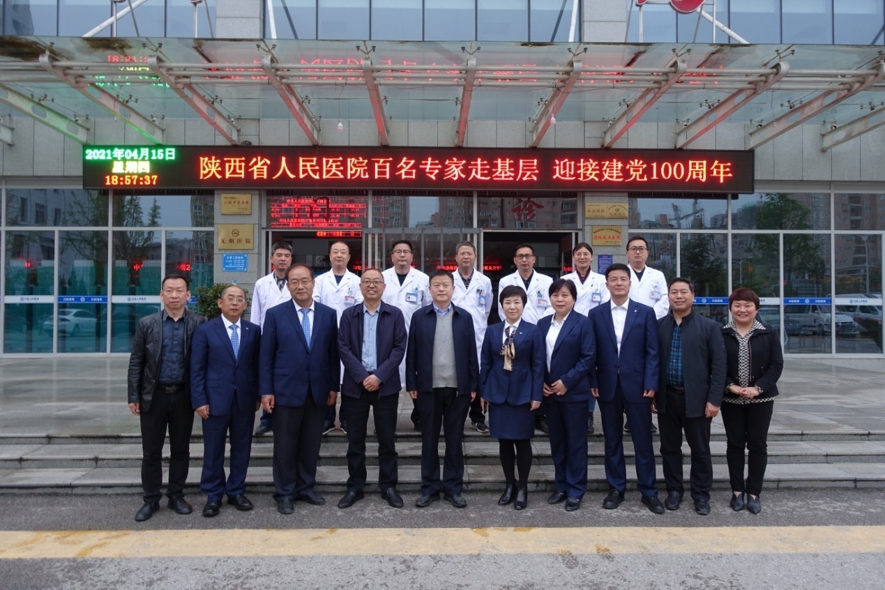 2021年4月14日~15日,段降龙院长助理带领心外科、骨科、磁共振室、急诊内科、耳鼻喉科等科室主任一行9人,走进宁陕县医院、西乡县人民医院和洋县人民医院,组织开展座谈交流、查房指导、疑难危重症会诊和专题讲座等专家走基层活动迎接建党100周年。