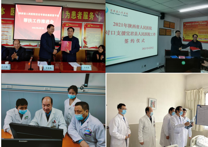 2021年4月7日~8日,马富春副院长带领基层医疗服务部、普外一科、骨科、神经内一科、放疗科及CT室等科室主任一行9人,走进富平县医院和宜君县人民医院,组织开展座谈交流、查房指导、疑难危重症会诊和专题讲座等专家走基层迎接建党100周年活动。