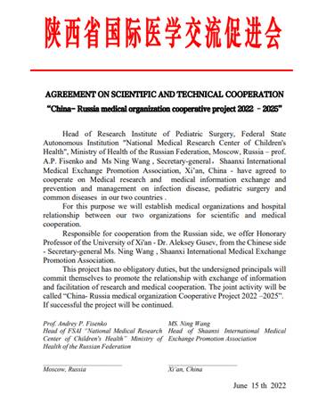 与俄罗斯相关方面签署《中俄医疗机构合作项目2022-2025》。