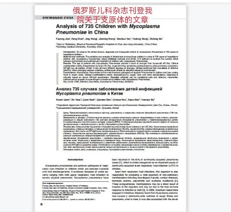 儿童病院主编的论文“Analysis of 735 Children with Mycoplasma Pneumoniae in China”。