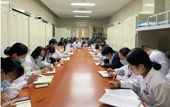 为营造文明、和谐、温馨的办公及就医环境,药学部于2月26日-3月1日组织主院区和西咸院区全员围绕文件重要内容进行学习,张鹏主任主持,药学部四位副主任领学,护理部刘晓梅副主任全程参与。
