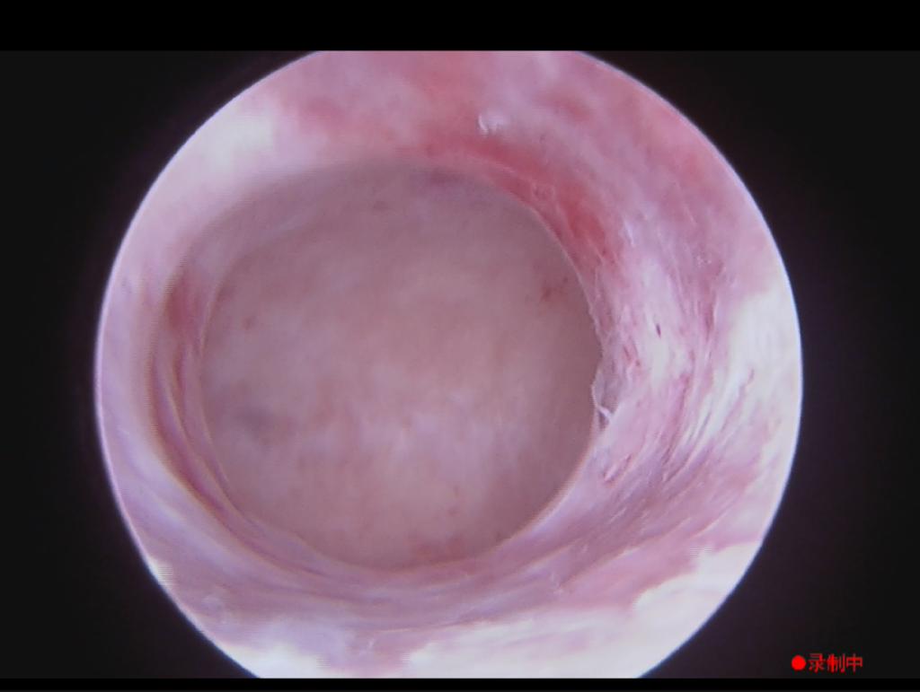 图3.术后探查宫腔内壁平整,无残留赘生物组织,未损伤周围组织
