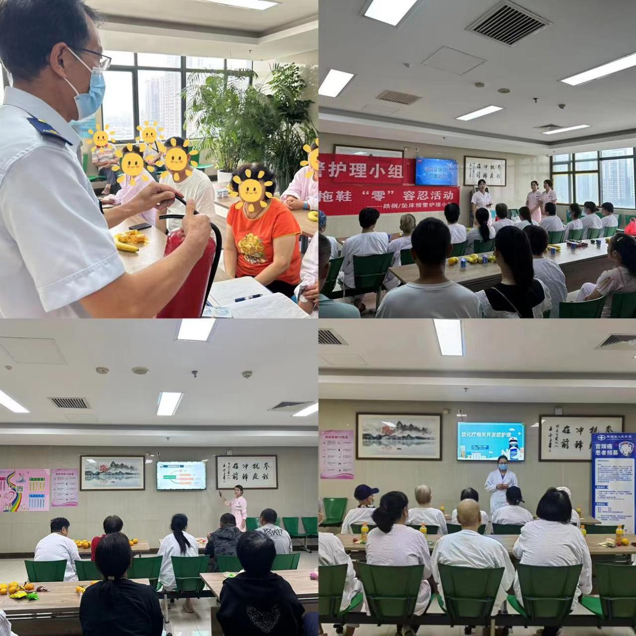 9月—《尊老爱老,防跌倒》,科普跌倒坠床的危险性,使用一次性拖鞋的模拟演练,寓教于乐的方式,传达科室杜绝跌倒发生的决心。