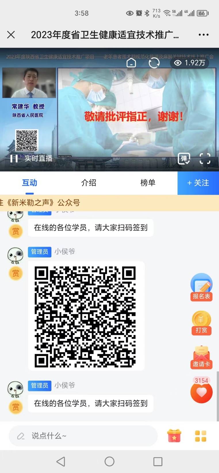 11月18日,由陕西省卫健委主办、五楼自拍 麻醉科承办的”老年患者围术期规范化管理及麻醉关键技术”线上推广会成功举行,本次会议通过米勒之声麻醉平台在线直播,1.92万人次在线观看。