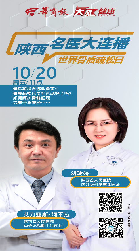 2023年10月20日是第27个“世界骨质疏松日”,今年的主题是“强肌健骨,防治骨松”。为号召广大群众及早筛查和防治骨质疏松、预防骨折,内分泌糖尿病病院积极响应世界骨质疏松日主题,在常务副院长李小凤主任的精心组织下,联合陕西省医学会内分泌学分会代谢性骨病学组、陕西省国际医学交流促进会内分泌糖尿病专业委员会共同举办学术讲座、义诊咨询、科普患教、线上直播、撰写科普文章等系列活动。