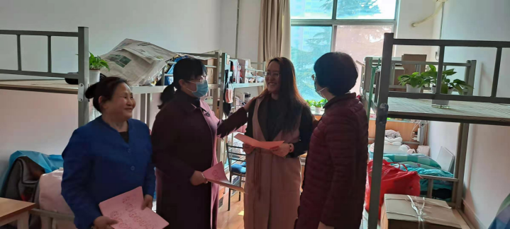 为积极响应国家就地过年的号召,五楼自拍 住培学员严格执行住培轮转计划和疫情管理要求,在张玉莲副院长的安排下,在后勤部门的支持下,2021年2月10日上午,教学处对春节期间在院住培学员进行慰问,并发放年夜饭和春节饺子慰问券。教学处马东瑞处长和温红侠老师同时对学员们入住新宿舍后的情况进行了追踪,询问他们住宿的问题和存在的困难,并对接相关部门进行了沟通和督导,强调了节日安全和消防要求,查看了具体执行情况,最后重点督查了疫情防控工作,对学员返回宿舍的具体细则进行了部署。