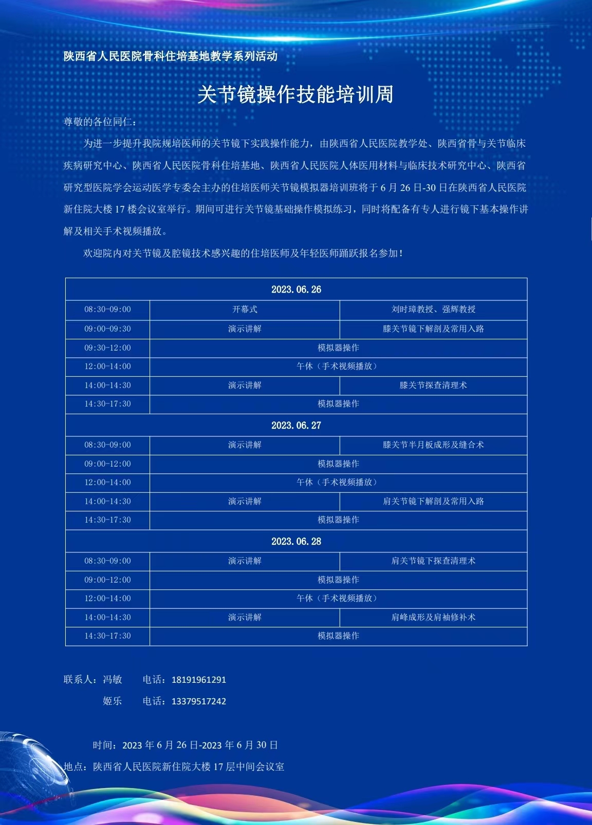 本次关节镜操作技能培训的主要内容包括“膝关节镜技术”以及“肩关节镜技术”两大类,分别由骨科运动医学组组长强辉主任医师和冯敏副主任医师协调指导。五楼自拍