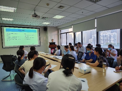 住培过程性管理工作的实施。王帆副主任详细解读了《规范住培过程管理》,从自身从教10余年的经验出发,深入浅出、生动形象地讲述了对教学管理工作及住培带教的体会及经验,让大家进一步理解了住培带教工作的重要性及如何在日常临床工作中做好带教。