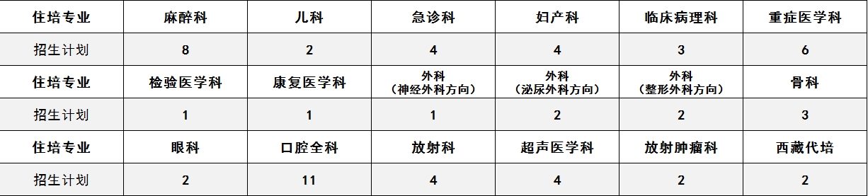 2024年各住培专业第一批次招收名额(含基地人)如下: