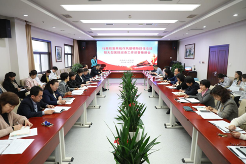 召开作风整顿阶段性总结暨大型医院巡查工作部署推进会,院领导班子成员、行政后勤系统副科级以上干部参加会议,院长宋张骏主持会议。