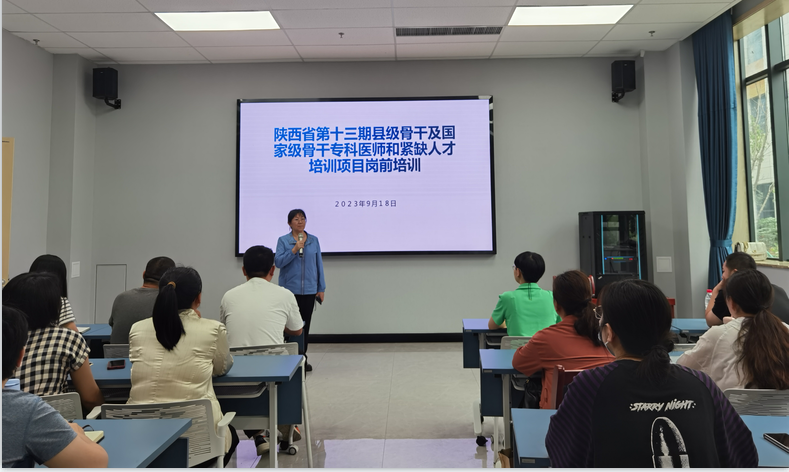 其次,9月18日,在西咸院区行政楼示教室,陕西省第十三期县级骨干及国家级骨干专科和紧缺人才学员岗前培训顺利开班。学员们观看了五楼自拍