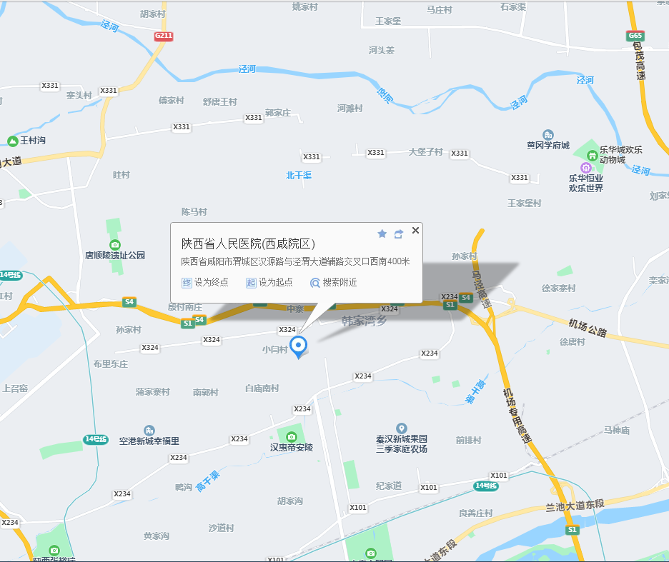 (4)其他路线:乘坐1147路、1071路、副840路至“省人民医院西咸院区”下车即到